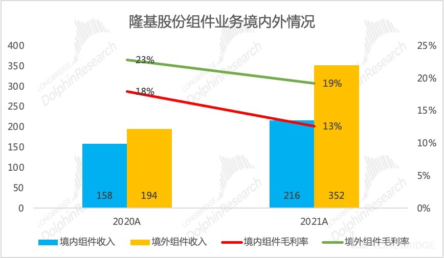 1.组件业务主要对外出售。公司组件业务起于 2014 年,是基于自身领先的单晶硅片技术发展起来的。干一行则成一行,公司组件业务已经成长为公司的第一大业务支柱,并且占据了全球第一的位置。同时公司组件业务全面全球化,境外组件收入超过国内市场,得到了海外市场的认可。