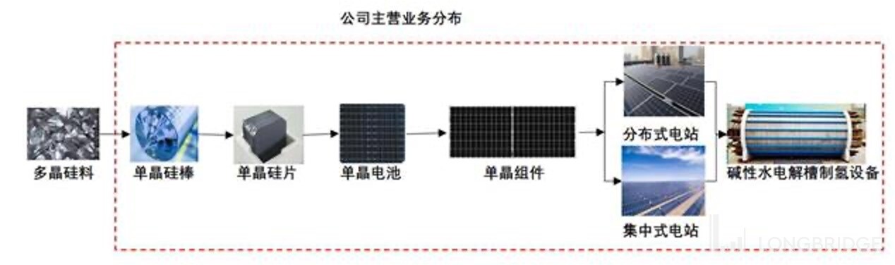 隆基股份卡位光伏赛道,是妥妥的 “光伏茅”。从硅片业务起家,公司沿着光伏产业链展开了一体化布局,当前业务范围涵盖硅棒 - 硅片 - 电池片 - 组件的研发、生产和销售,同时还布局集中式地面电站和分布式光伏屋顶(含 BIPV)的系统解决方案、光伏制氢等朝阳领域,不过公司的业务支柱是大家熟知的硅片和组件两个环节,在单晶硅片和组件环节,公司已经跃然成为全球第一的龙头。