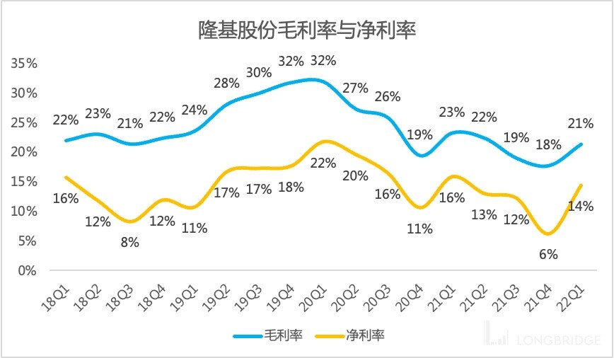 2022 年一季度环比四季度改善明显,毛利率从四季度的坑中快速回到 21%,推测主要于原材料成本的传导有关,同时净利率回到 14%,除了受益毛利率改善之外,还受益合资硅料厂投产(5 亿 +)、电站及森特转让(2 亿 +)等带来的投资净收益 7.4 亿元。