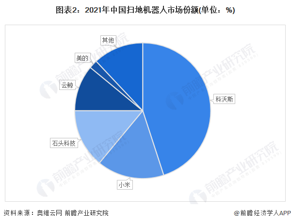 从我国扫地机器人市场来看,根据奥维云网的测算,在国内市场中,2021年国内线上市场前五大品牌分别为科沃斯、小米、石头、云鲸和美的,市场占有率分别为45%、16%、14%、11%和2%,合计市场占有率为88%,从上述国内市场占有率和国内线上市场占有率数据可以看出,智能扫地机器人行业品牌头部集中效应较为明显。