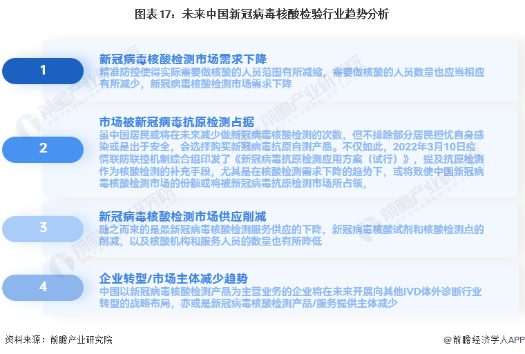 先前因为大量的核酸检测需求所开设的主营业务为新冠病毒核酸检测的企业机构也或将出现数量的减缩或是开展企业转型布局活动。
