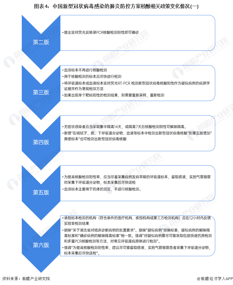新冠病毒核酸检测是突如其来的新冠肺炎疫情出现后迅速发展的行业,中国的新冠疫情防控行动均贴合国家卫健委出台的新型冠状病毒肺炎防控方案,中国新冠病毒核酸检测行业的发展具有极强的政策导向性,同时也具有一定的“时效性”。