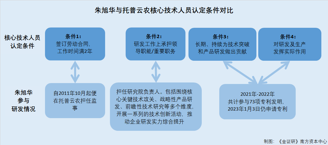 而朱旭华并未被托普云农认定为核心技术人员。