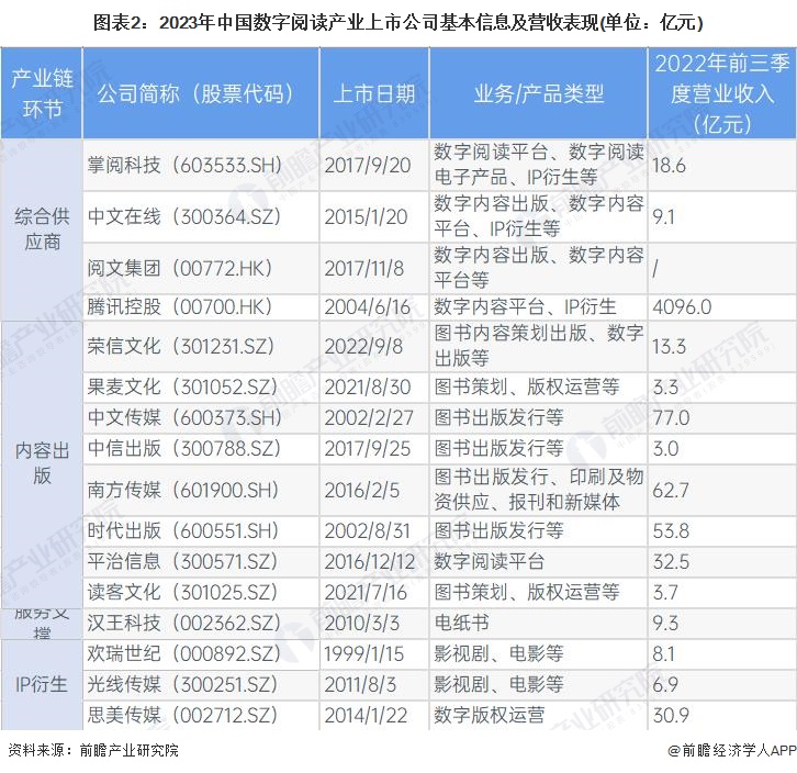 (原标题:【最全】2023年中国数字阅读产业上市公司全方位对比(附业务布局汇总、业绩对比、业务规划等))