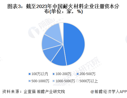 2、耐火材料行业企业注册资本分布