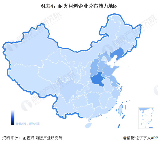 3、耐火材料行业企业分布地区