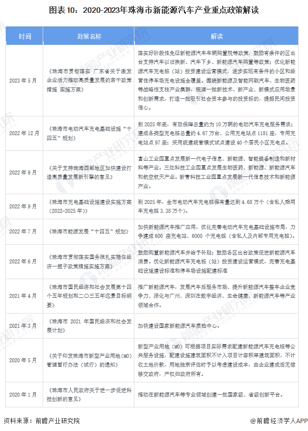 产业发展方面,根据《珠海市贯彻落实广东省关于激发企业活力推动高质量发展的若干政策措施实施方案》,落实好阶段性免征新能源汽车车辆购置税等政策,鼓励有条件的区出台支持汽车以旧换新、汽车下乡、新能源汽车购置等政策。围绕新能源及智能网联汽车、生物医药等战略性支柱产业集群,梳理一批新技术、新产业、新模式应用场景和创新需求,打造一批吸引社会资本参与的投资标的,提振民间投资信心;根据《珠海市国民经济和社会发展第十四个五年规划和二〇三五年远景目标纲要》,推广新能源汽车,发展汽车后服务市场、提升新能源汽车整车企业竞争力、深化与广州、深圳在数字经济、生命健康、新能源汽车等产业领域合作。