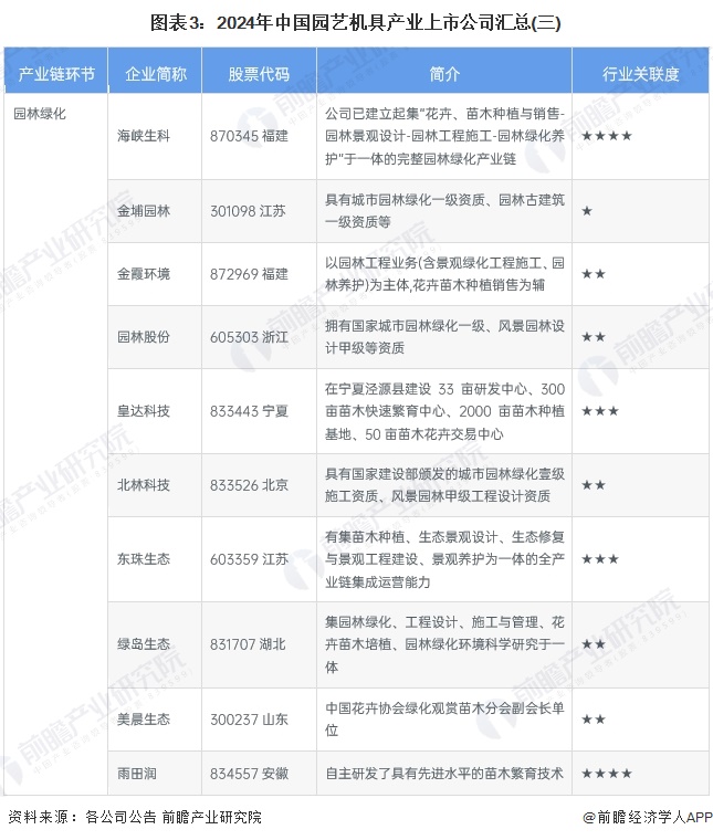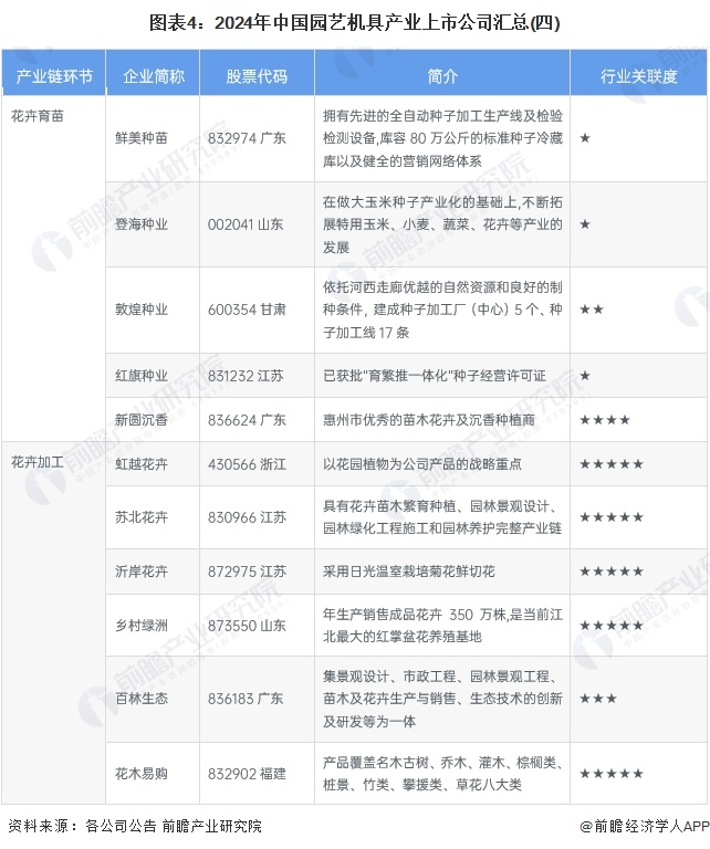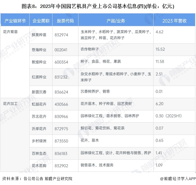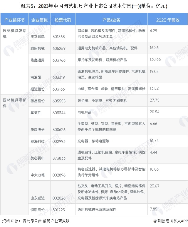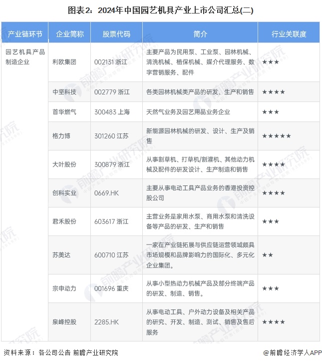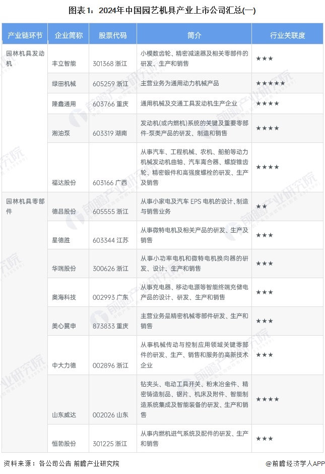1、园艺机具行业产业链上市公司汇总