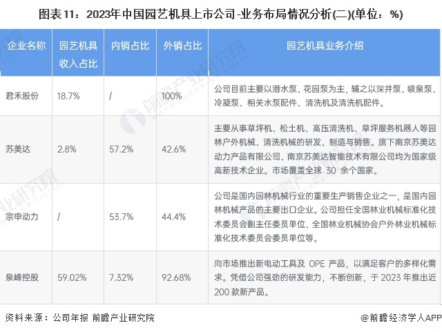 2、园艺机具行业上市公司业务布局对比