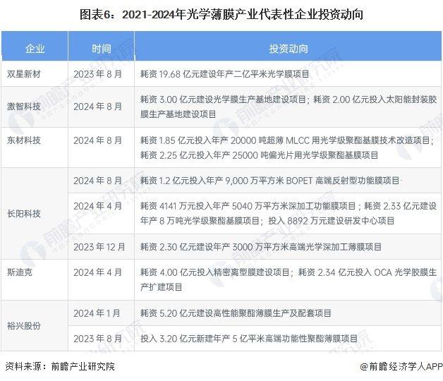 光学薄膜产业代表性企业最新投资动向