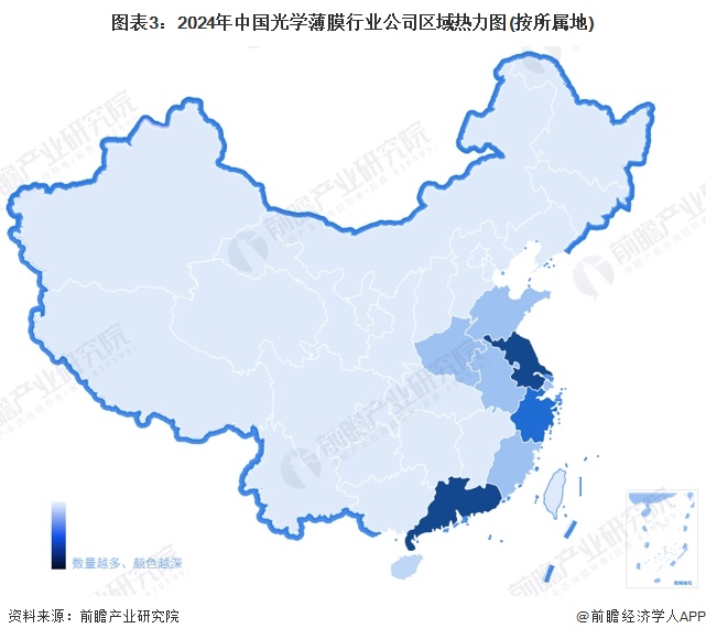 光学薄膜行业产业链区域热力地图:广东、江苏企业集聚优势明显