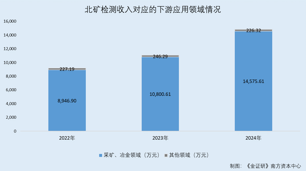 2022-2024年,北矿检测来自采矿、冶金应用领域的收入分别为8,946.9万元、10,800.61万元、14,575.61万元,占同期营业收入的比例分别为97.52%、97.77%、98.47%;来自其他领域的收入分别为227.19万元、246.29万元、226.32万元,占同期营业收入的比例分别为2.48%、2.23%、1.53%。