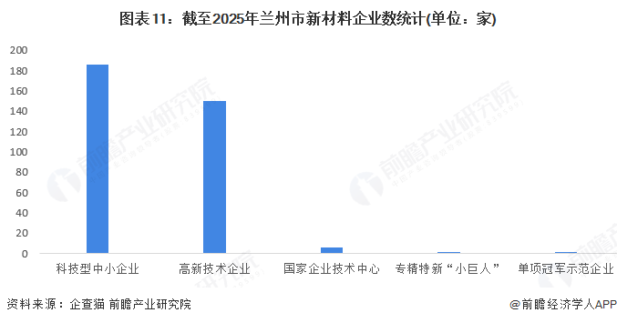 截至2025年8月1日,兰州市新材料行业拥有超过180家科技型中小企业,150家高新技术企业。还有1家国家技术中心、1家专精特新“小巨人”企业、1家单项冠军示范企业。