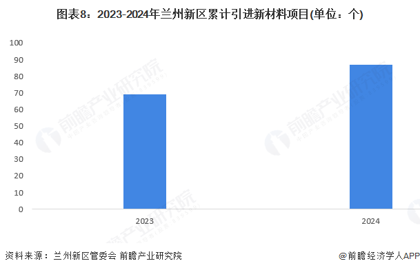 兰州新区是兰州市材料领域的重点发展区域,截至2023年底,兰州市累计实施新材料项目69个。截至2024年底,兰州新区累计引进能源新材料相关产业项目87个,较2023年底增加18个。