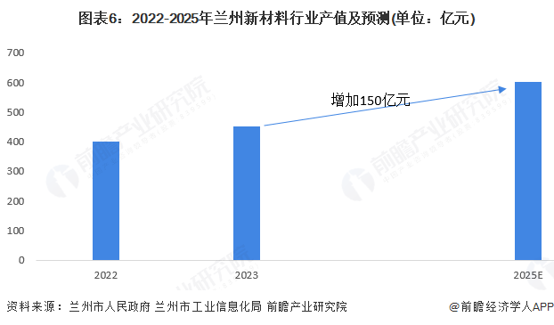 2023年兰州市新材料行业产值约450亿元,同比增长12.5%。2025年兰州市新材料产值目标为500亿美元,较2023年的产值将有150亿元的增长。