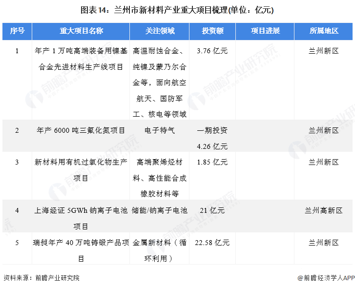 5、兰州市新材料产业重大项目梳理