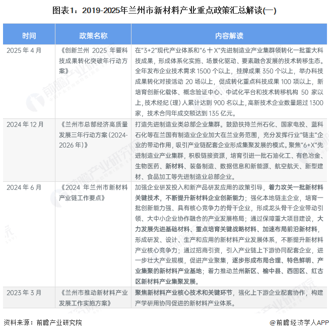 1、兰州市新材料产业政策环境