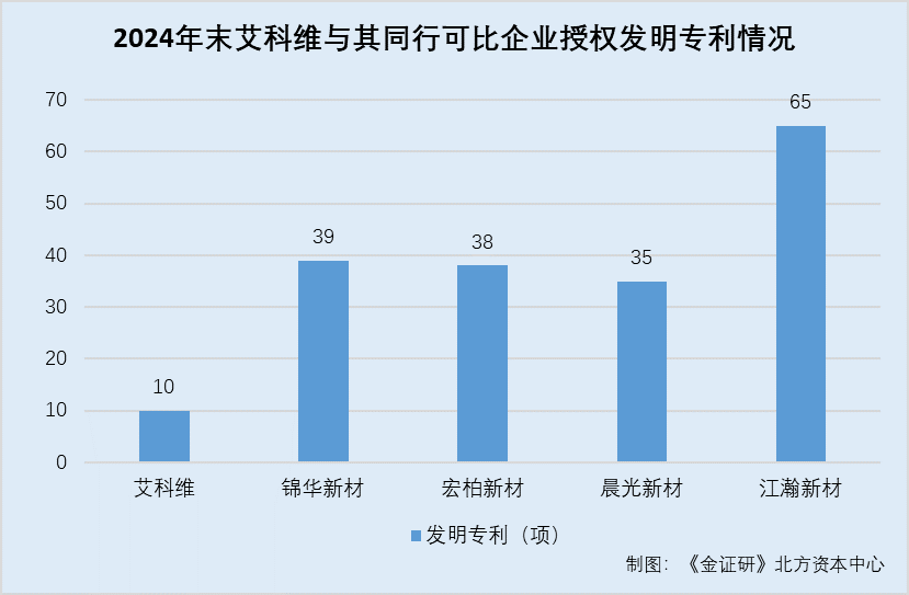 此外,截至2024年末,艾科维获授权的发明专利数量不敌同行。