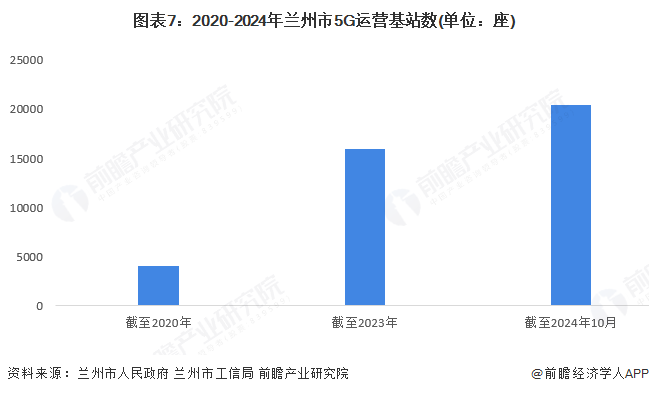 根据《兰州市“十四五”信息技术和大数据产业发展规划》的数据,截至2020年兰州市建成5G基站超4000座。截至2023年底,累计建成5G基站超1.6万座。截至2024年10月底,兰州市累计建成5G基站超2万座。