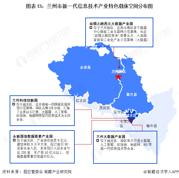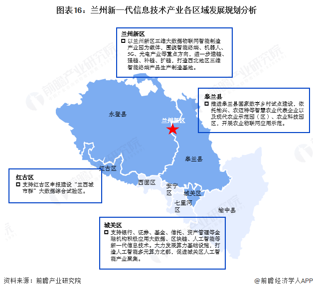 根据《兰州市“十四五” 信息技术和大数据产业发展规划》,兰州新区以三维大数据物联网智能制造产业园为载体,围绕智能终端、机器人、5G、光电产业等重点方向发展;推动皋兰县农业物联网应用示范;支持红古区申报建设“兰西城市群”大数据综合试验区。