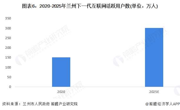 根据《兰州市“十四五”信息技术和大数据产业发展规划》的数据,2020年兰州市下一代互联网活跃用户达到约150万人,到2025年用户规模将翻倍。