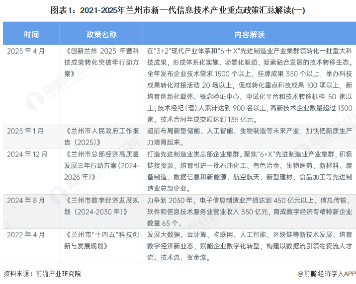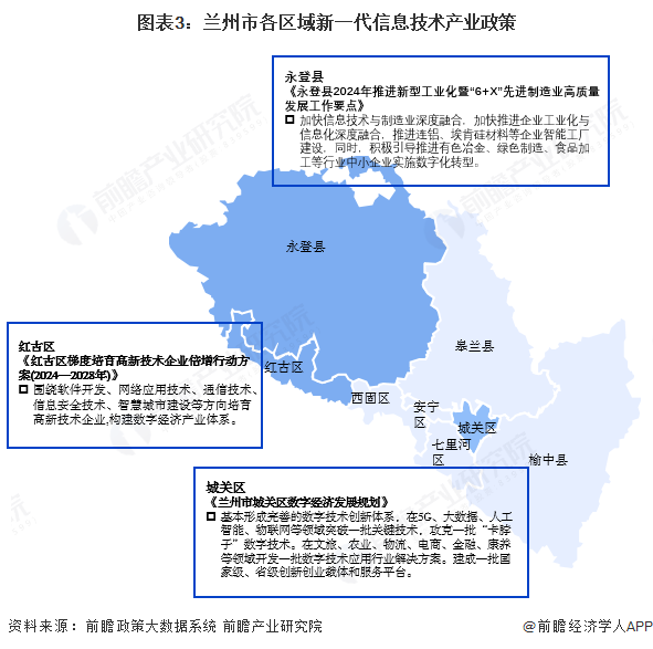 截至2025年6月,永登县、城关区、红古区等发布相关政策,推动新一代信息技术等战略性产业发展。城关区推动新一代新技术领域的关键技术突破。永登县加快信息技术与制造业结合。红古区积极培育新一代信息技术领域高新技术企业。