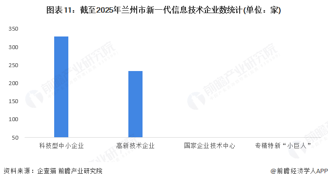 截至2025年6月,兰州市新一代信息技术行业拥有超过300家科技型中小企业,超过200家高新技术企业。还有1家国家技术中心和1家专精特新“小巨人”企业。