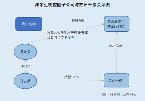 而同名的“马宏兵”系苏州千禄持股100%的股东,而该企业多年与苏州海尔生物医疗科技使用同一来联系电话。基于上述情形,苏州千禄与海尔生物子公司总经理、与海尔生物子公司的关系或待解。