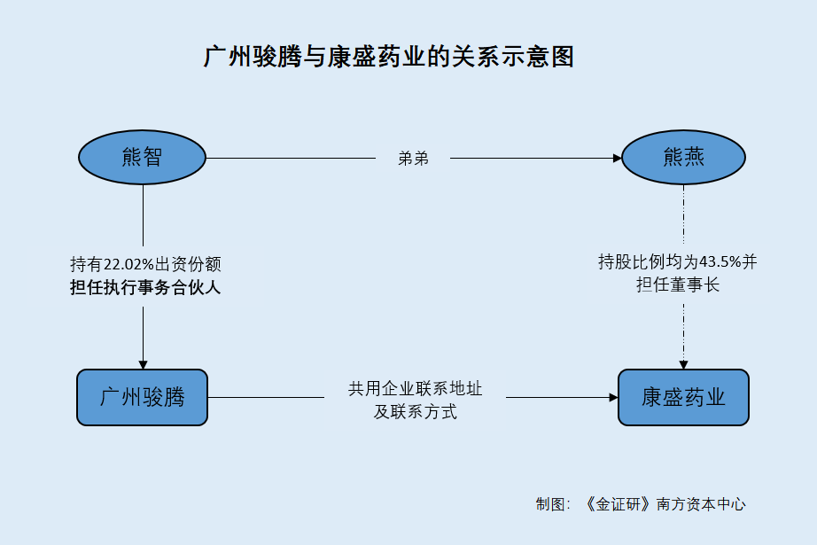 2.5 熊智还参与设立合伙企业广州骏腾,该企业与熊燕担任董事长的康盛药业共用联系方式
