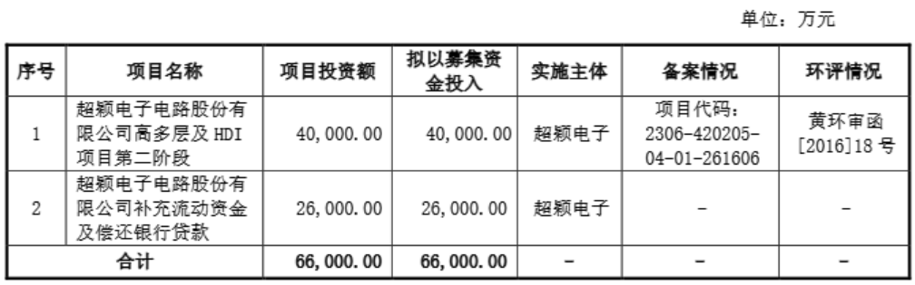 在此背景下,超颖电子计划通过此次IPO拟募集6.6亿元资金,计划用于“高多层及HDI项目第二阶段”以及“补充流动资金及偿还银行贷款”,项目投资额分别为4亿元和2.6亿元。