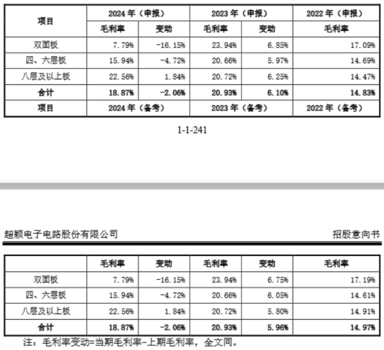 反映在毛利率方面,2024年超颖电子八层及以上PCB毛利率为22.56%,显著高于四、六层PCB的15.94%。随着与特斯拉、博世等客户合作增加,八层及以上板中HDI产品销量占比上升,直接带动公司整体毛利率从2022年的14.83%提升至2024年18.87%。