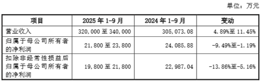 表:超颖电子2025年1-9月业绩预计及同比变动情况