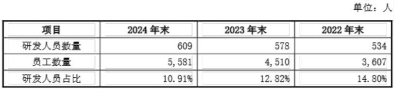 此外,研发团队的规模与专业能力,进一步支撑着超颖电子技术创新体系的高效运转。公司组建了一支实践经验丰富的研发团队,截至2024年末研发人员达609人,占员工总数的10.91%。公司高度重视产品研发及技术创新,通过引进和培养研发技术人才,增加研发设备投入,不断加强公司新产品、新工艺和新材料的研发能力。