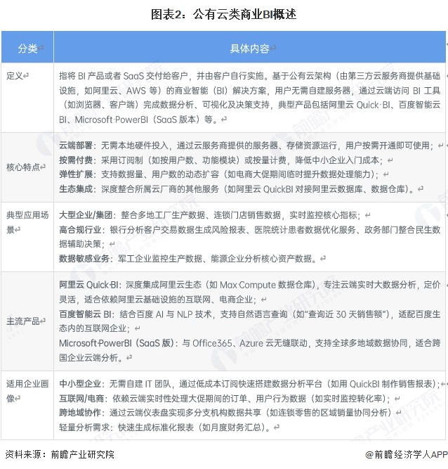 公有云类商业BI(SaaA BI)指将BI产品或者SaaS交付给客户,并由客户自行实施。公有云类商业BI核心价值在于降低BI使用门槛(无需硬件和运维投入)、提升数据分析效率(云端实时处理+生态联动)、支持业务灵活扩展(按需调整资源),帮助企业聚焦“数据决策”而非“技术搭建”。