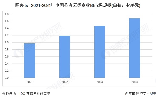 ——2024年公有云类商业BI市场规模约1.7亿美元
