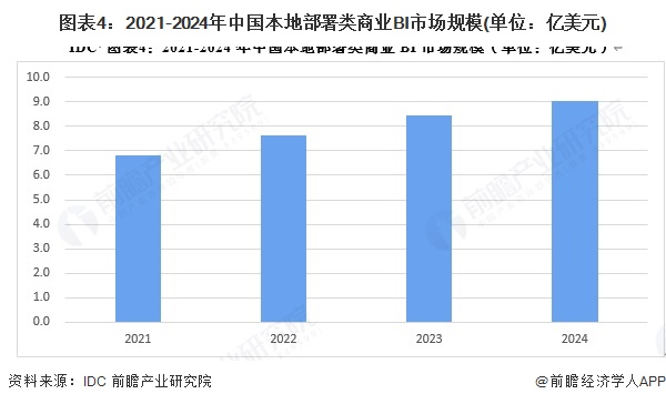 ——2024年本地部署类商业BI市场规模约9.0亿美元