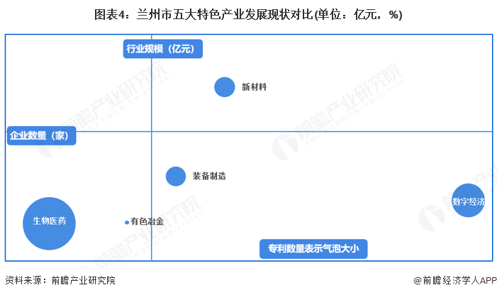 其中有色冶金是兰州市优势企业,政策支持力度大,竞争力较强;生物医药、新材料、装备制造和数字经济为新兴产业,支持政策较多,产业发展前景广阔。