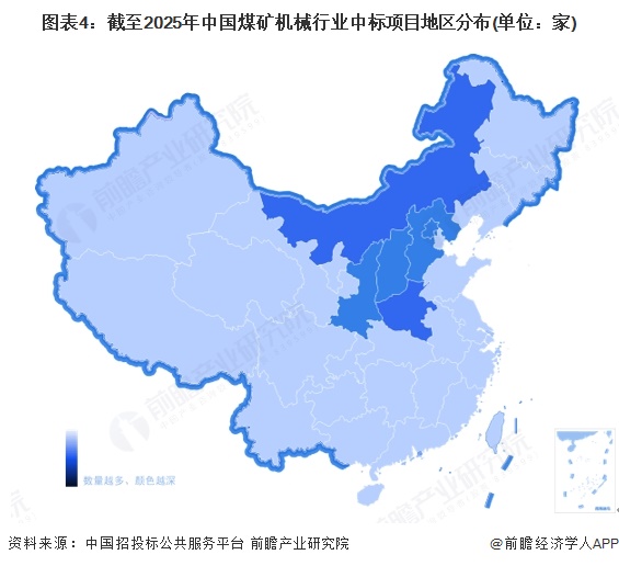 4、中国煤矿机械行业招投标项目主要分布在内蒙古自治区、河南省等地