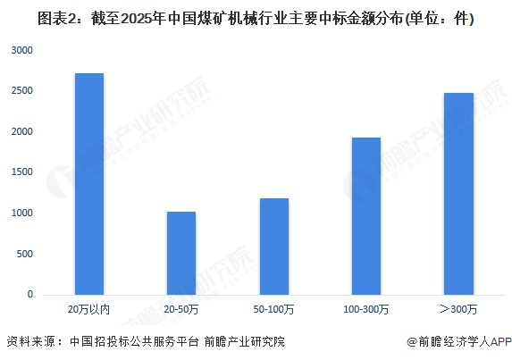 2、中国煤矿机械行业招标金额呈现两极分化