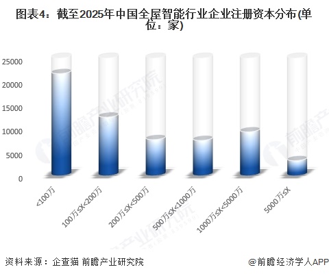 中国全屋智能企业的注册资本主要分布在100万元以下