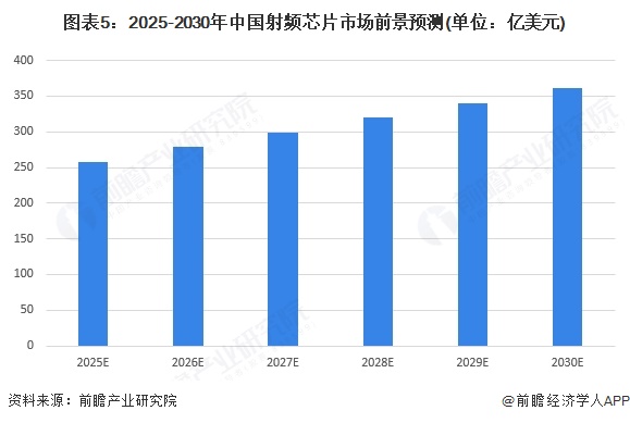 射频芯片的发展前景受技术迭代与多元应用场景的双重驱动而极具潜力,同时也面临着技术突破与市场竞争的双重考验。在需求端,5G-A的商用推进、6G的提前研发以及Wi-Fi7的普及,再加上智能汽车的车联网、自动驾驶和卫星互联网的快速发展,都在持续催生对射频芯片的差异化需求,而智能家居、工业物联网、医疗健康等领域的扩张,也让适配低功耗、小尺寸等特点的射频芯片拥有了更广阔的应用空间。在市场格局上,国际巨头的行业整合虽强化了高端领域的技术与专利壁垒,但各国对供应链自主可控的重视和相关政策扶持,为本土厂商提供了国产替代的契机,不过本土厂商仍需攻克高端核心器件的技术瓶颈,同时应对低端市场同质化竞争带来的挑战,未来能够实现材料、工艺与场景深度适配的企业,将在行业中占据更有利的地位。初步估计,2025-2030年全球射频芯片市场规模继续保持稳健增长,2023年超过360亿美元,年均复合增长率约为7.0%。