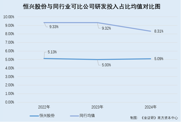 由上可知,恒兴股份在报告期内研发投入占比低于同行均值。
