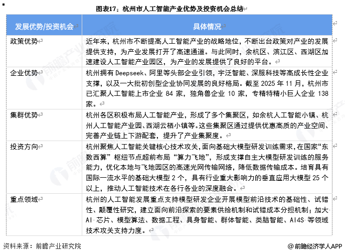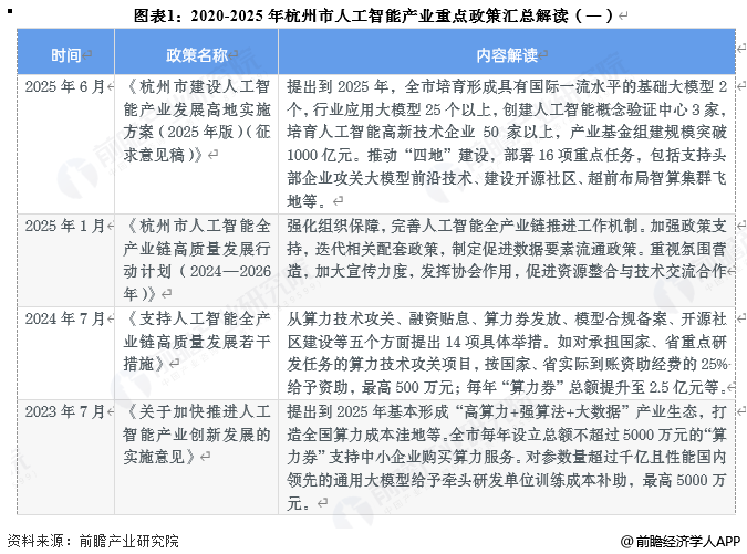 近年来,杭州市出台多项鼓励性政策,不断加大对人工智能产业的支持力度。2025年3月,杭州出台《杭州市加快打造人工智能先锋城市行动计划(2025-2026年)》,计划到2026年,杭州要形成“场景应用最开放、算力供给最普惠、产业生态最健全、创新创业最便捷”的产业发展环境。