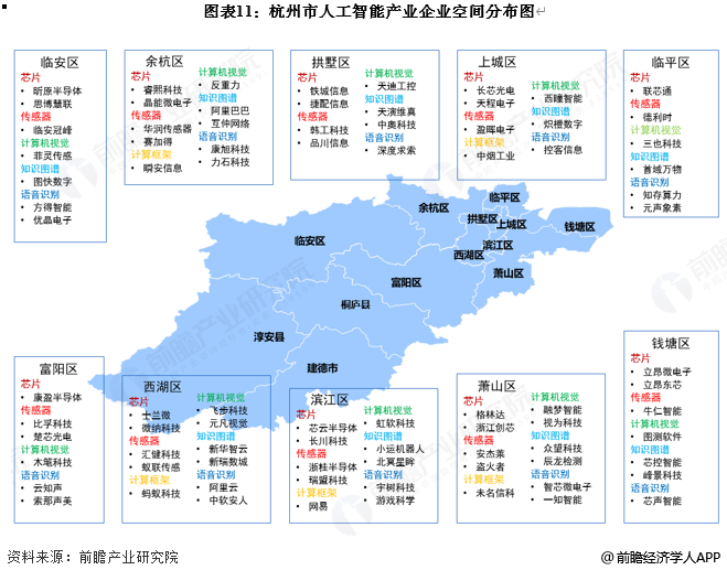 在人工智能相关领域,杭州拥有较为完善的上下游产业链布局。杭州市相继成立了余杭人工智能小镇、杭州人工智能产业园等人工智能产业集聚区,吸引并集聚了一批优秀企业,为人工智能产业的发展提供了重要平台。