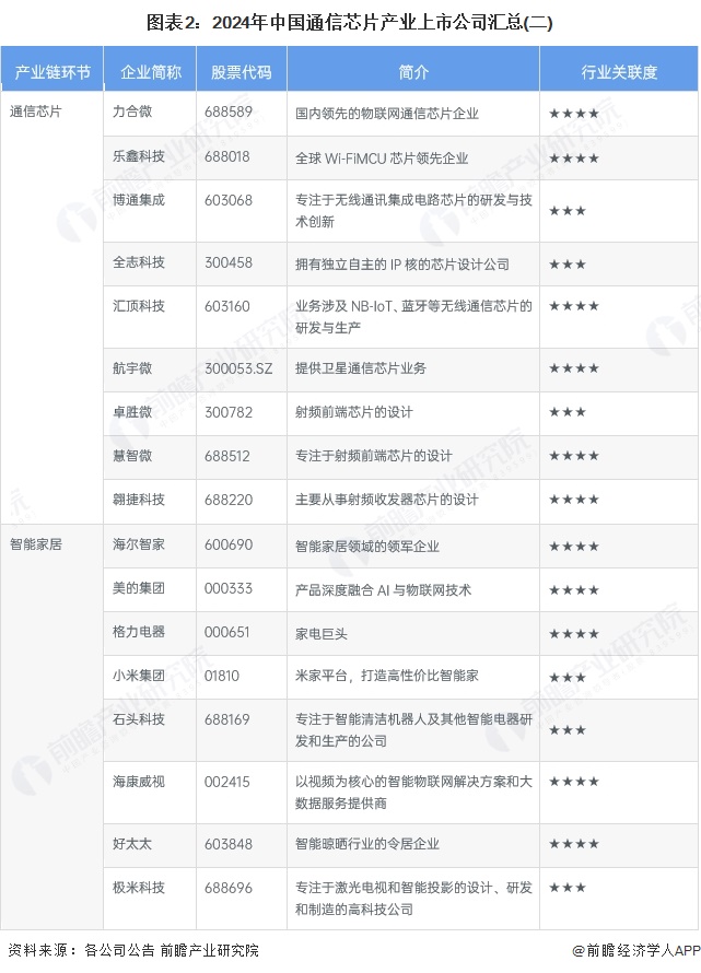 行业主要上市公司:力合微(688589)、乐鑫科技(688018)、博通集成(603068)、全志科技(300458)等