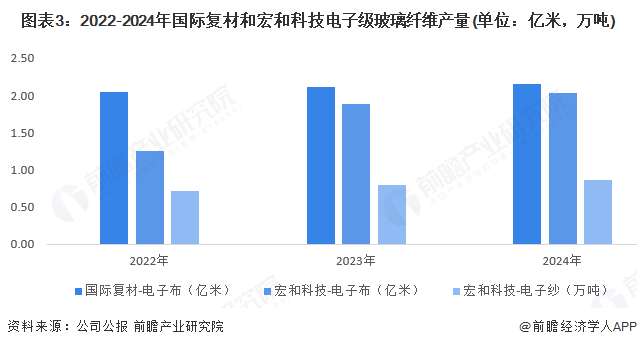 从上市公司国际复材和宏和科技的电子布/纱产量看,2024年国际复材电子布产量2.16亿米,同比增长2.37%;宏和科技电子布产量为2.03亿米,同比上升7.98%,电子纱产量0.86万吨,同比增长8.86%。