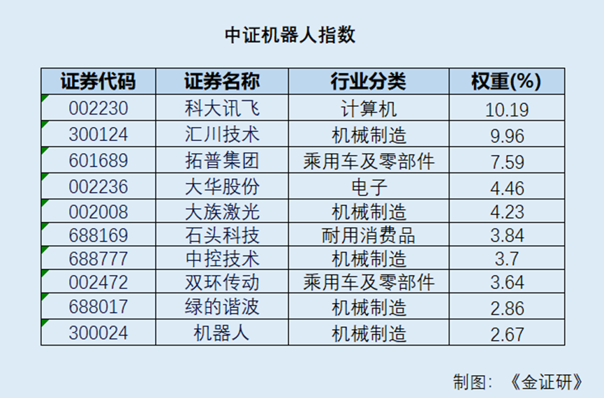 中证机器人指数选取系统方案商、数字化车间与生产线系统集成商、自动化设备制造商、自动化零部件商以及其它机器人相关上市公司证券作为指数样本,以反映上市公司中机器人相关证券的整体表现。