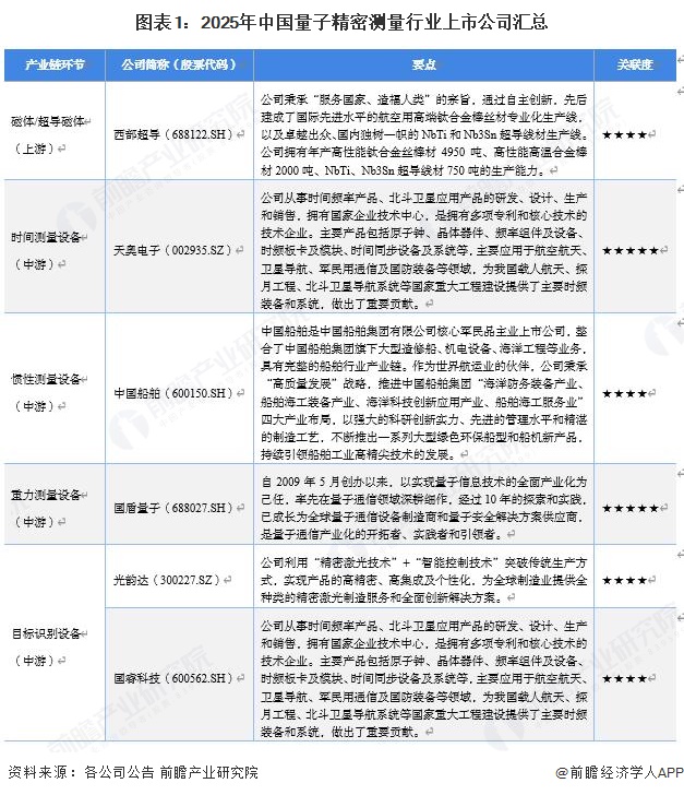 1、量子精密测量行业上市公司汇总