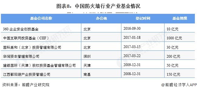 通过在中国证券投资基金业协会中搜索与防火墙行业相关产业投资基金,具体信息汇总如下: