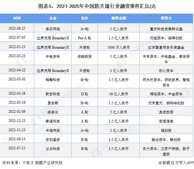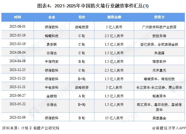 (原标题:【投资视角】启示2025:中国防火墙行业投融资及兼并重组分析(附投融资汇总、产业基金和兼并重组等))